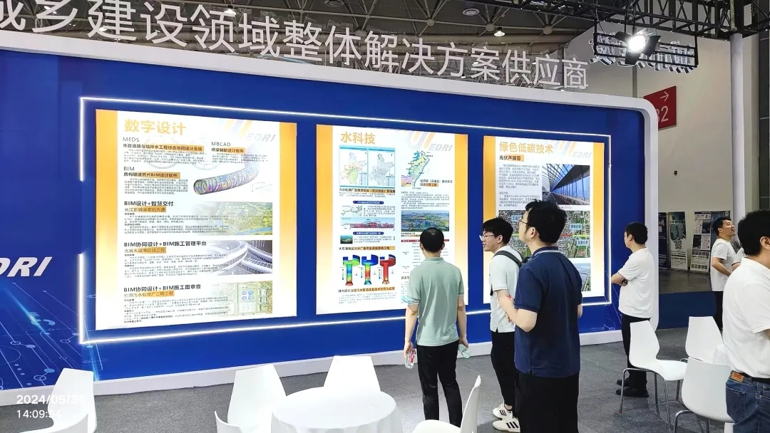 本次武漢市政院展廳搭建以“數(shù)智賦能 低碳轉(zhuǎn)型”為主題,圍繞“做城市建設(shè)領(lǐng)域整體解決方案供應(yīng)商”企業(yè)愿景,重點聚焦以“水”為主的兩項創(chuàng)新成果,展出了涵蓋智慧水務(wù)、城市服務(wù)城市內(nèi)澇防治與水環(huán)境流域治理中試服務(wù)事項領(lǐng)域眾多的新技術(shù)、新產(chǎn)品、新應(yīng)用。