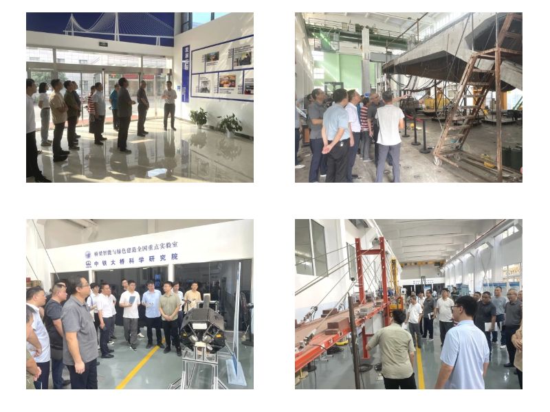 ? ? 在橋梁智能與綠色建造全國重點實驗室,大家參觀了實驗室的科研試驗和研發(fā)成果,了解了實驗室的發(fā)展歷程、研究方向和研究成果等。重點觀摩了正在進行的足尺試驗——大跨中央索面混凝土斜拉橋拼寬利用關(guān)鍵技術(shù),試驗采用懸臂鋼結(jié)構(gòu)梁拼寬結(jié)合LUHPC橋面鋪裝更換的方案,為橋梁拼寬設(shè)計提供了一種全新的解決思路和技術(shù)方案;詳細聽取了基于UHPC新材料的相關(guān)試驗成果、研究結(jié)論和應(yīng)用方向,對UHPC在橋梁工程的運用進行了討論,實驗室還給予了技術(shù)指導和建議;深入了解了檢測機器人、建造智能裝備、監(jiān)測智能傳感器等設(shè)備和產(chǎn)品的在橋梁建造和運維中的運用情況,著重關(guān)注了部分設(shè)備、產(chǎn)品的迭代過程和性能參數(shù),拓寬了對橋梁智能檢測、智能建造和智慧運維的認識。