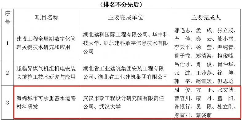 近日,湖北省土木建筑學(xué)會公布第五屆湖北省土木建筑科學(xué)技術(shù)獎(jiǎng)獲獎(jiǎng)名單,由武漢市政院牽頭、武漢大學(xué)共同參與的《海綿城市可承重蓄水道路材料研發(fā)》科研項(xiàng)目榮獲二等獎(jiǎng)。