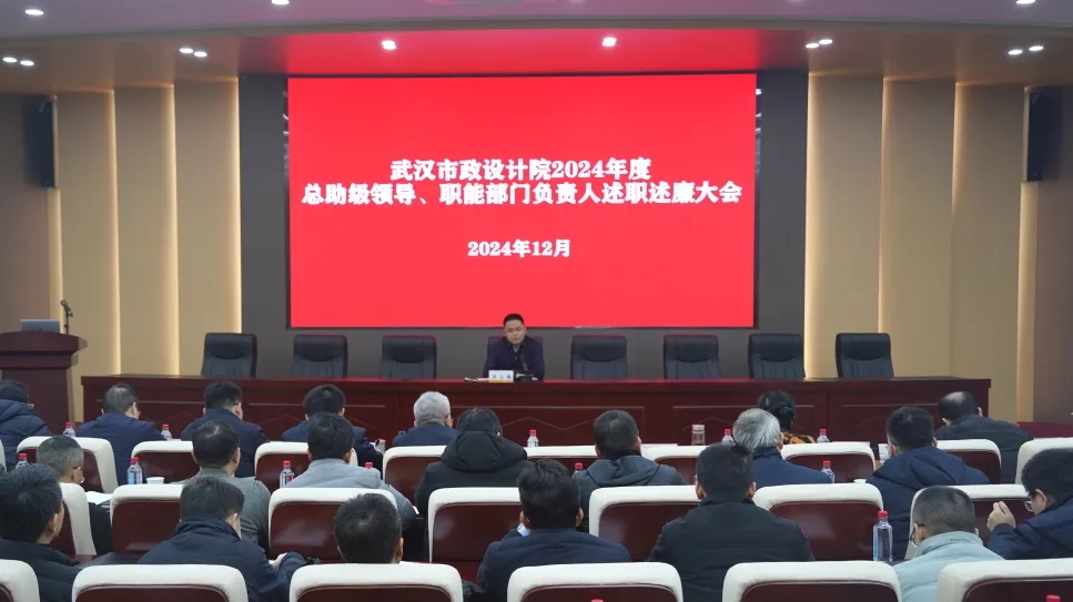 ? ? 12月24日下午,武漢市政院組織召開了2024年度總院中層干部述職述廉暨民主測評大會。公司領導班子成員、各部門(單位)負責人、職能部門全體員工共計70余人參加會議。市城投集團公司副總經理,武漢市政院黨委書記、董事長汪小南出席會議并講話。
