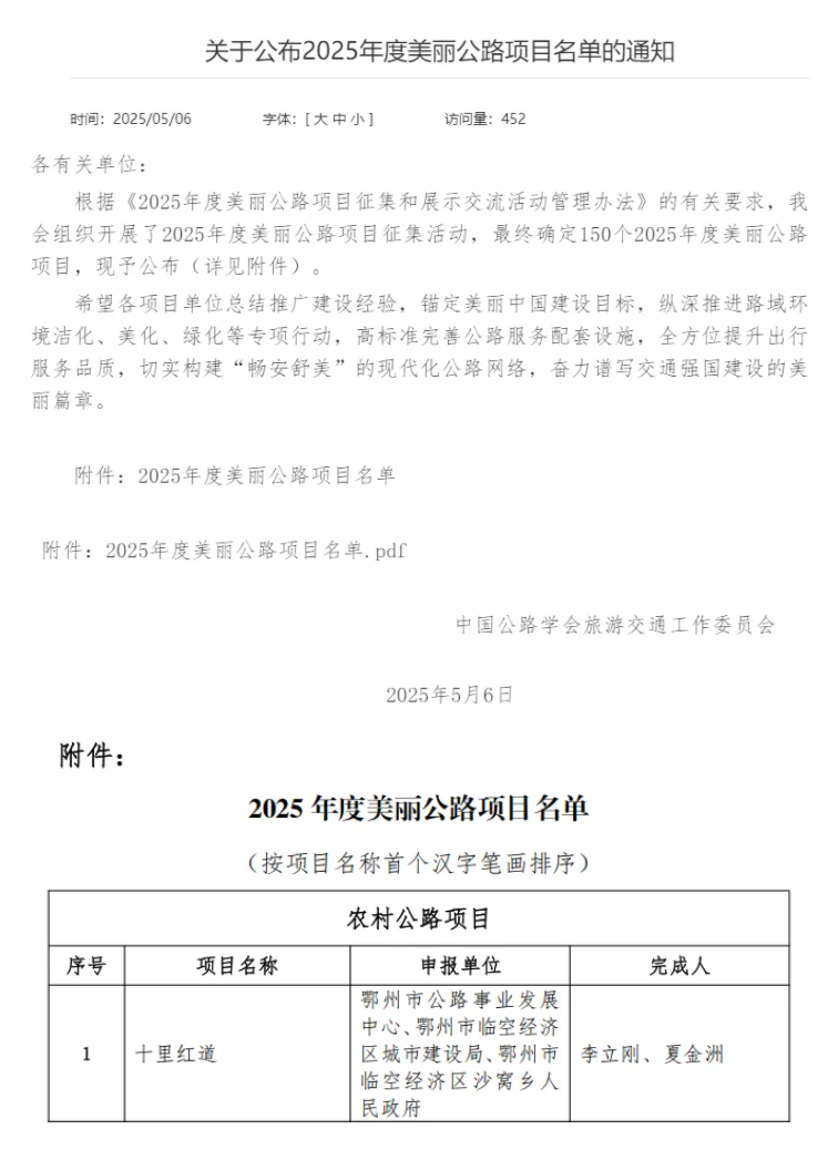 ? ? 近日,中國公路學(xué)會正式公布“2025年度美麗公路項目”名單,武漢市政院設(shè)計的鄂州市臨空經(jīng)濟區(qū)沙窩鄉(xiāng)“十里紅道”憑借紅色文化傳承與生態(tài)環(huán)境融合的卓越理念,成功躋身全國150個標(biāo)桿項目之列。