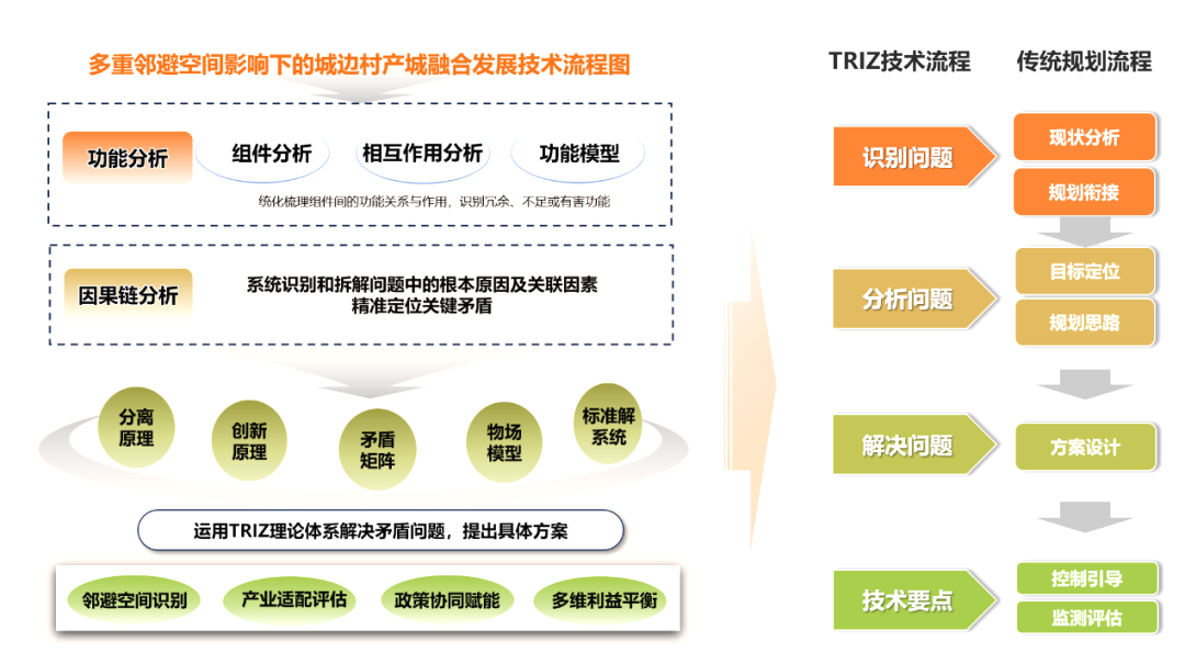 “基于TRIZ創(chuàng)新理論的一種多重鄰避空間影響下的城邊村產(chǎn)城融合發(fā)展規(guī)劃技術(shù)”項(xiàng)目基于寧波北侖新碶街道村莊規(guī)劃編制實(shí)踐,對(duì)城邊村產(chǎn)城融合發(fā)展的深層矛盾進(jìn)行科學(xué)拆解,精準(zhǔn)識(shí)別出“空間排他、物理割裂、功能受限、發(fā)展制約”四大關(guān)鍵矛盾。項(xiàng)目提出的“化鄰避為鄰利”技術(shù)方案,有效應(yīng)對(duì)土地供需不平衡、資源保護(hù)利用不協(xié)調(diào)等問(wèn)題,提出“破解約束、產(chǎn)業(yè)升級(jí)、植入IP”的產(chǎn)業(yè)發(fā)展路徑,成功解決多重鄰避空間制約下的規(guī)劃發(fā)展難題,為新碶街道量身擘畫(huà)了“碶彩稻田”鄉(xiāng)村振興推進(jìn)示范區(qū)和“稻田+”都市田園鄉(xiāng)村示范區(qū)的規(guī)劃藍(lán)圖。