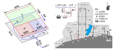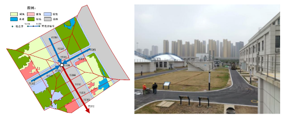 下墊面產(chǎn)流示意圖(左)和黃家湖污水廠(chǎng)應(yīng)用效果圖(右)