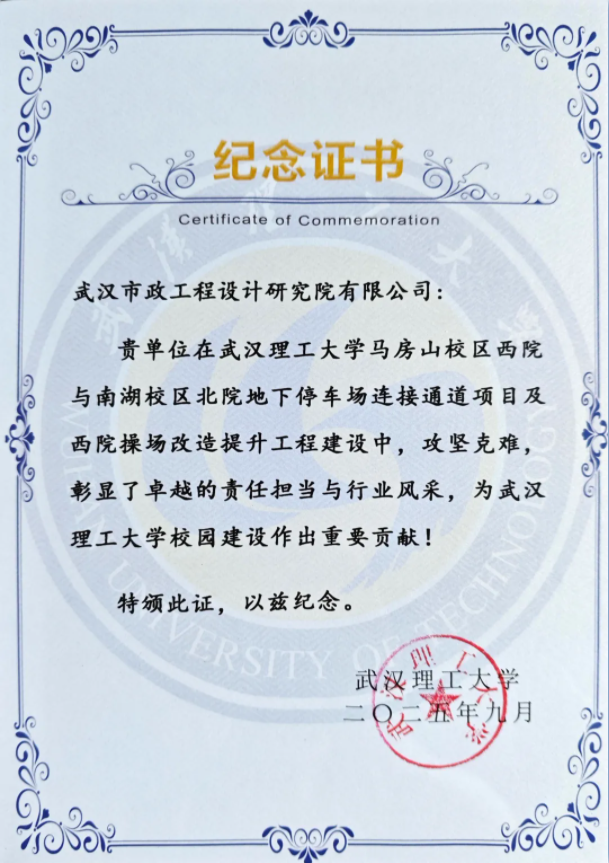 2025年9月6日上午,由武漢市政院設(shè)計(jì)的武漢理工大學(xué)馬房山校區(qū)西院與南湖校區(qū)北院地下停車場(chǎng)連接通道項(xiàng)目(以下簡(jiǎn)稱“武漢理工大學(xué)地下通道”)通車儀式隆重舉行。洪山區(qū)區(qū)委區(qū)政府主要領(lǐng)導(dǎo)、武漢理工大學(xué)領(lǐng)導(dǎo)及各參建單位代表共同出席,見證這一重要時(shí)刻。儀式上,洪山區(qū)區(qū)委主要領(lǐng)導(dǎo)頒發(fā)“紀(jì)念證書”,表彰武漢市政院等參建單位在項(xiàng)目設(shè)計(jì)與實(shí)施過程中作出的重要貢獻(xiàn)。