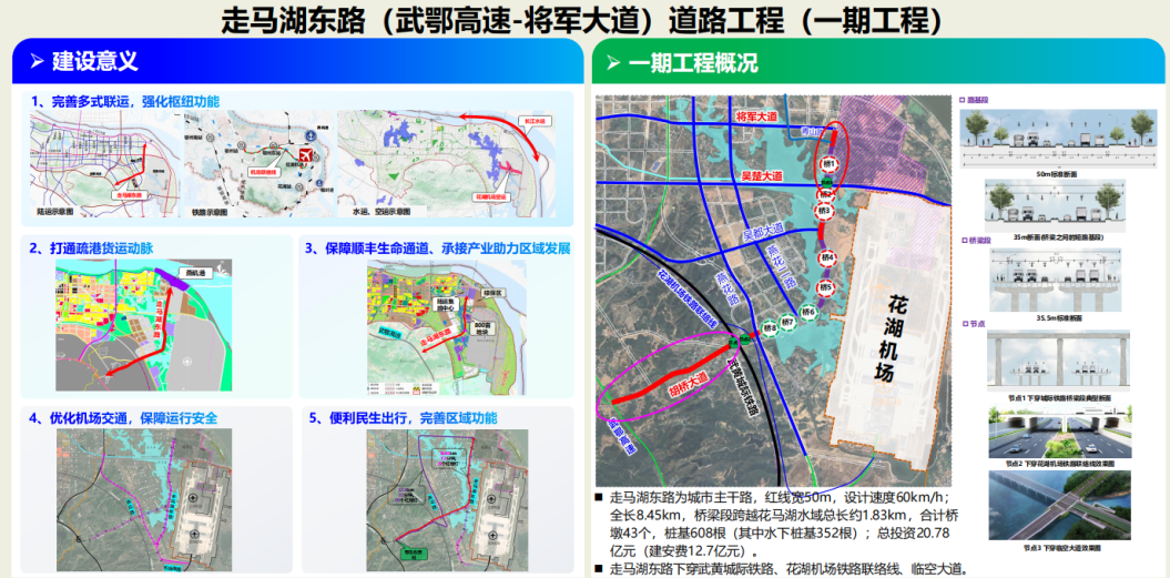 作為鄂州臨空區(qū)“五橫六縱”骨架路網(wǎng)的關(guān)鍵組成,相關(guān)道路工程將筑牢花湖機場集疏運體系,串聯(lián)機場貨運區(qū)、綜保區(qū)、高鐵東站及高速出入口,完善“空鐵公水”多式聯(lián)運,支撐國際航空貨運樞紐輻射能力;同時銜接航空物流、智能制造等核心園區(qū),配套綜合管廊、智慧市政設施,推動產(chǎn)城融合與民生改善,強化武鄂黃黃交通一體化銜接,助力武漢新城建設,加速鄂州從傳統(tǒng)工業(yè)城市向臨空經(jīng)濟強市轉(zhuǎn)型,為區(qū)域“十四五”港產(chǎn)城一體化發(fā)展提供堅實支撐。
