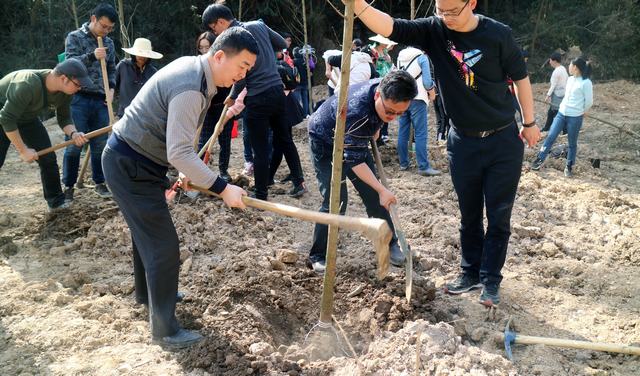 蔡輝為活動致辭,他肯定了此次植樹拓展活動的重要意義,希望大家在工作生活之余不要忘記承擔(dān)社會責(zé)任,并勉勵大家要在公司轉(zhuǎn)型發(fā)展時期展現(xiàn)出更加飽滿和積極向上的精神面貌。隨后,志愿者們拿起鋤頭、鐵鍬、水桶,在工作人員的指導(dǎo)下挖坑、植樹、培土、澆水、固定,將一棵棵樹苗植入土里。大家熱情高漲,你挖我栽,互相配合,30余棵樹苗已經(jīng)栽種完畢。大家合力豎立起“武漢市政工程設(shè)計院愛綠護(hù)綠植樹林”標(biāo)識牌,并與之合影留念。