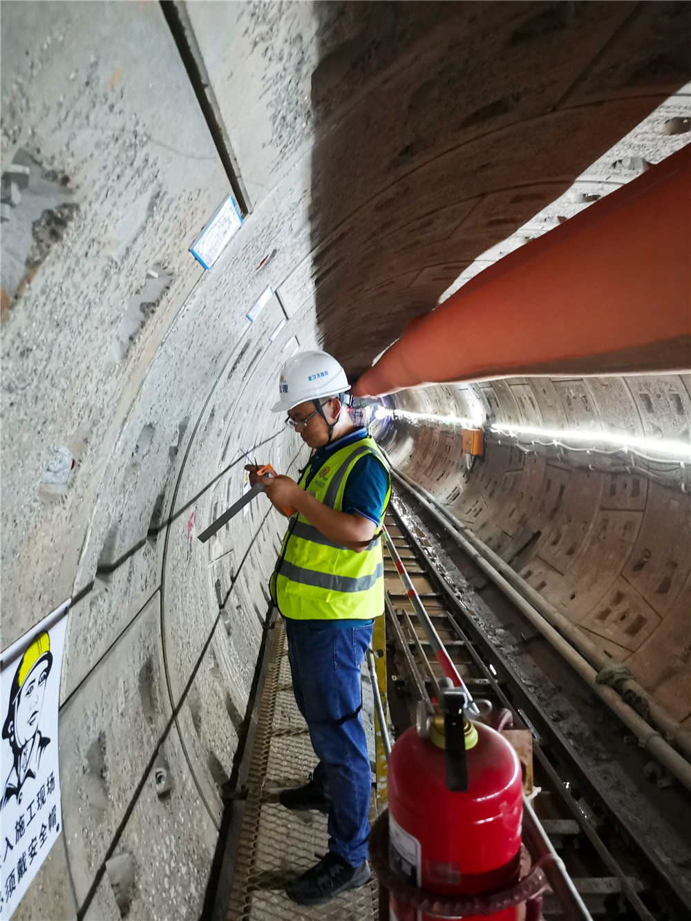 地處青山區(qū)的大東湖污水傳輸系統(tǒng)是“四水共治”和“長江大保護”的關(guān)鍵工程,是國內(nèi)首條建設(shè)的最長深層污水傳輸隧道,全長17.6公里。污水傳輸工程的勘察、論證、設(shè)計和監(jiān)理工作均由公司承擔(dān),項目規(guī)模大、難度高。為保證項目進度,員工們在炎熱的環(huán)境中依然一絲不茍地工作。蔡輝一行乘坐工程梯下到污水處理隧道工作井下,與項目監(jiān)理負責(zé)人交流項目建設(shè)中存在的問題和困難,叮囑他們注意防暑降溫,保質(zhì)保量完成項目建設(shè)任務(wù)。