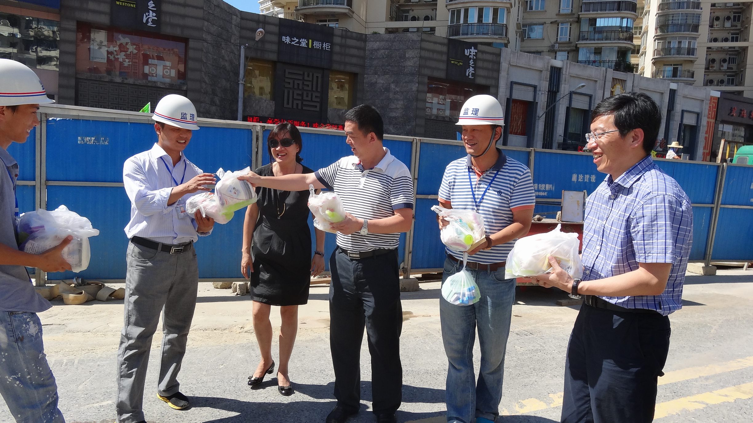 ??? 近段時(shí)間,武漢市出現(xiàn)了連續(xù)高溫天氣,但為了保障所承擔(dān)項(xiàng)目的按時(shí)推進(jìn),公司監(jiān)理、勘測、測試等外業(yè)人員仍然在烈日下堅(jiān)守工作崗位。8月16日,公司黨委書記蔡輝、副總經(jīng)理趙世杰、總經(jīng)理助理胡軍等一行在監(jiān)理公司、勘測設(shè)計(jì)院負(fù)責(zé)人的陪同下,對部分工地進(jìn)行了走訪慰問,為高溫下堅(jiān)持工作的員工送上一份清涼。