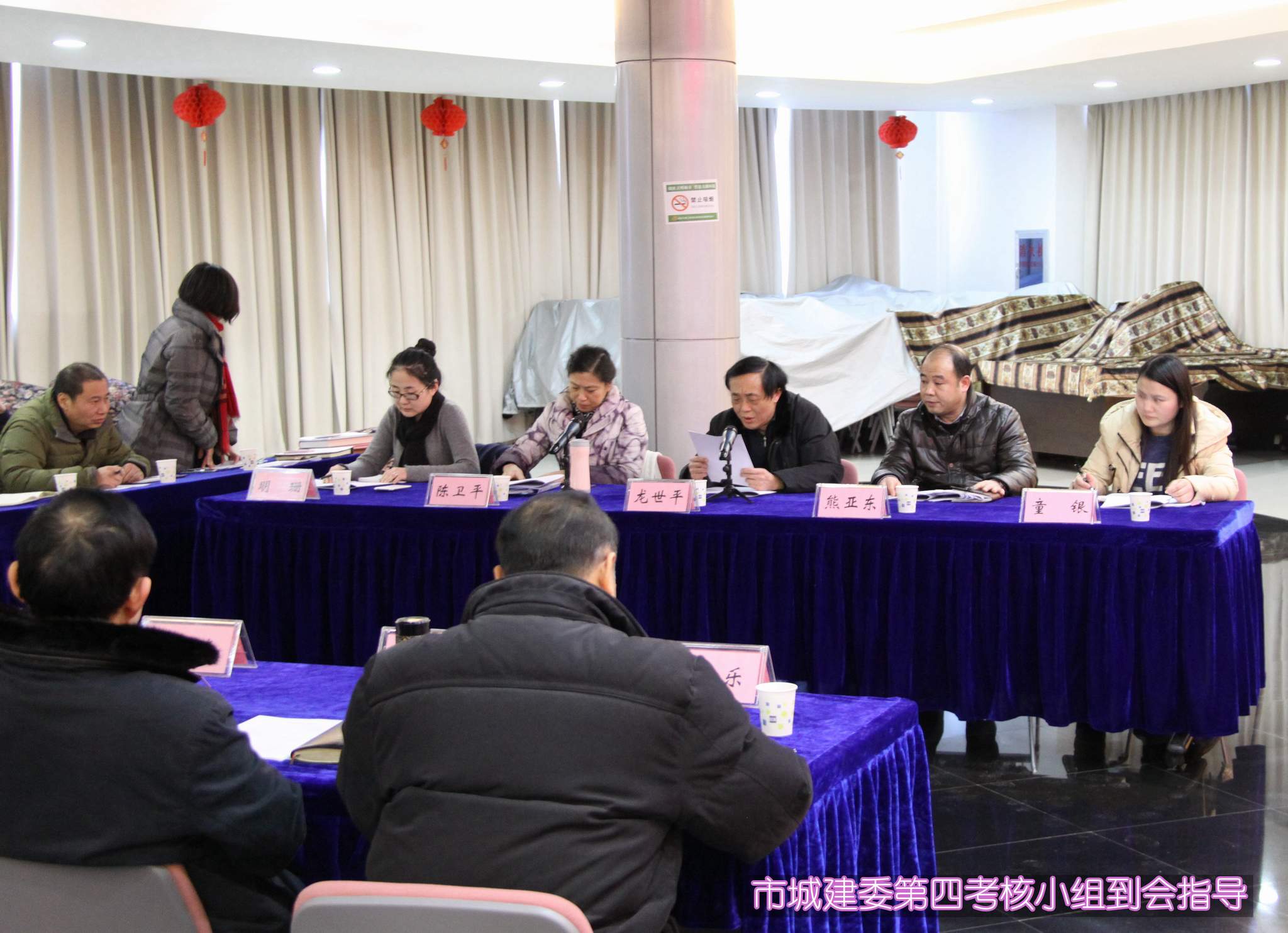 ??? 按照市城建委《關(guān)于做好2014年度直屬單位綜合考評工作的通知》要求及安排,2015年2月3日下午,市城建委第四考核組對公司領(lǐng)導(dǎo)班子和領(lǐng)導(dǎo)干部、績效目標管理、基層黨建工作、黨的群眾路線教育實踐活動整改項目落實情況、落實黨風(fēng)廉政建設(shè)責(zé)任制、推進懲治和預(yù)防腐敗體系建設(shè)、社會管理綜合治理六項工作進行綜合全面考核。由市城建委總工程師龍世平、工會主任陳衛(wèi)平、辦公室副主任科員熊亞東、建設(shè)工程節(jié)能處副主任科員明珊、市城建委績效管理工作專班干部童銀組成的第四考核小組到場指導(dǎo),公司領(lǐng)導(dǎo)班子、總經(jīng)理助理、黨支部書記、部門負責(zé)人參加了會議,會議由蔡輝書記主持。