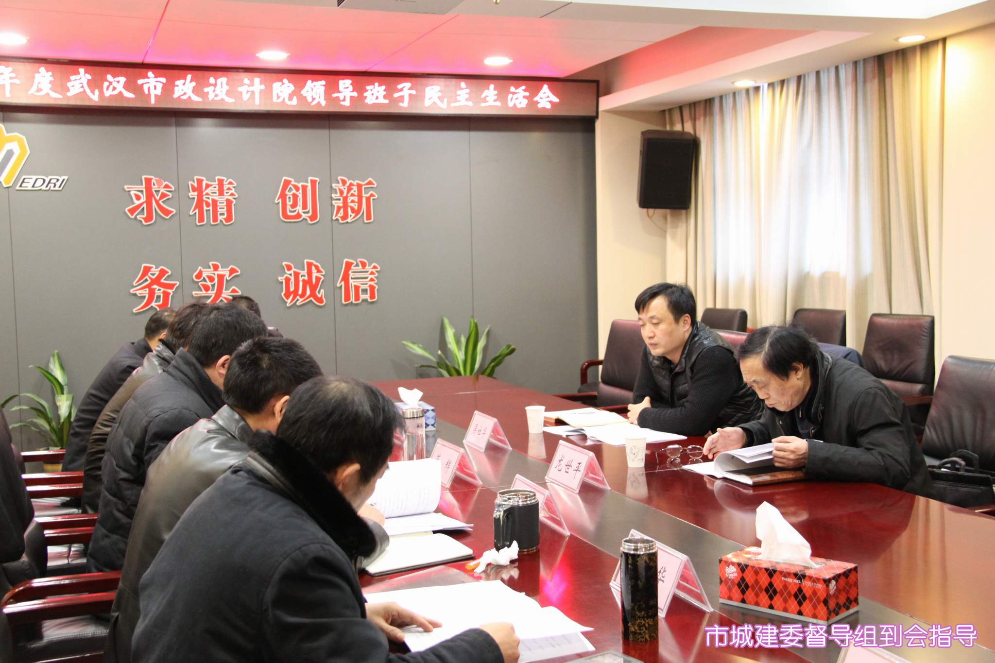 ??? 按照市城建委的安排和部署,2月5日下午,公司領導班子召開2014年度民主生活會,市城建委督導組組長、總工程師龍世平和督導組成員吳社華出席并指導了會議,黨委書記蔡輝主持會議,并代表公司黨委作對照檢查并作總結講話,公司領導班子成員逐一作對照檢查,開展批評與自我批評。