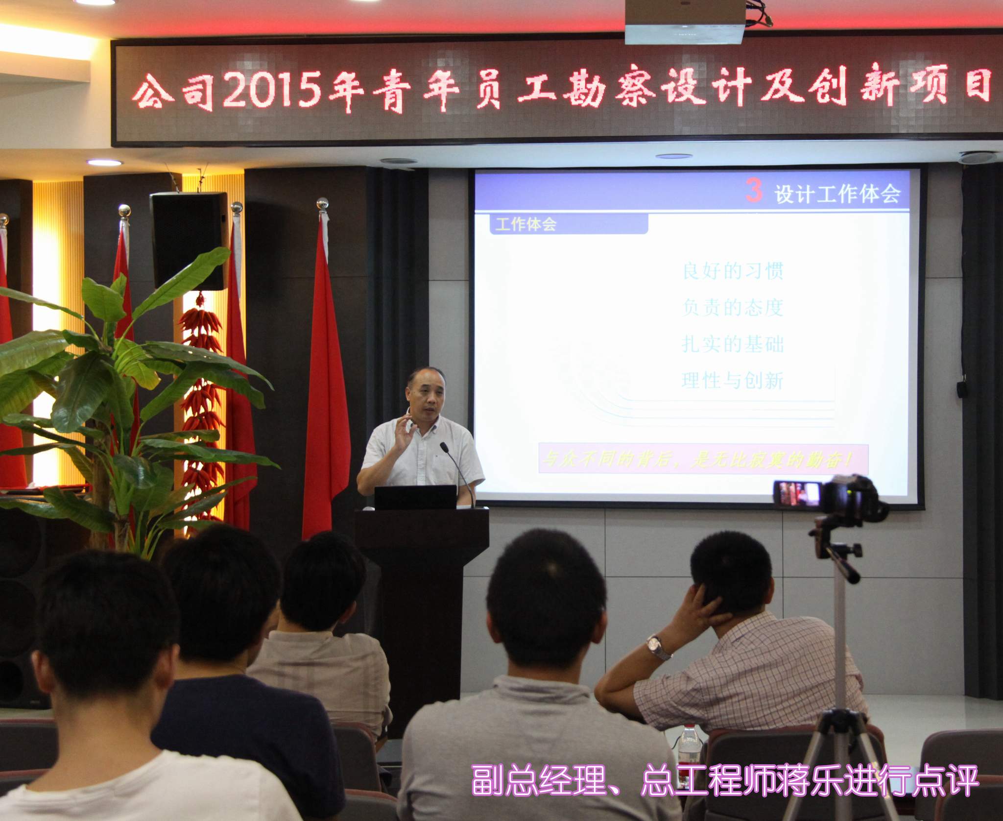 ??? 公司副總經理、總工程師蔣樂對整場比賽進行了點評,他從匯報思路、匯報形式等方面出發(fā),總結出了匯報過程中的五個忌諱,包括“照本宣科”、“平鋪直敘”、“不交流互動”、“多人匯報”、“無明確結論”,讓在場的各位員工受益匪淺。