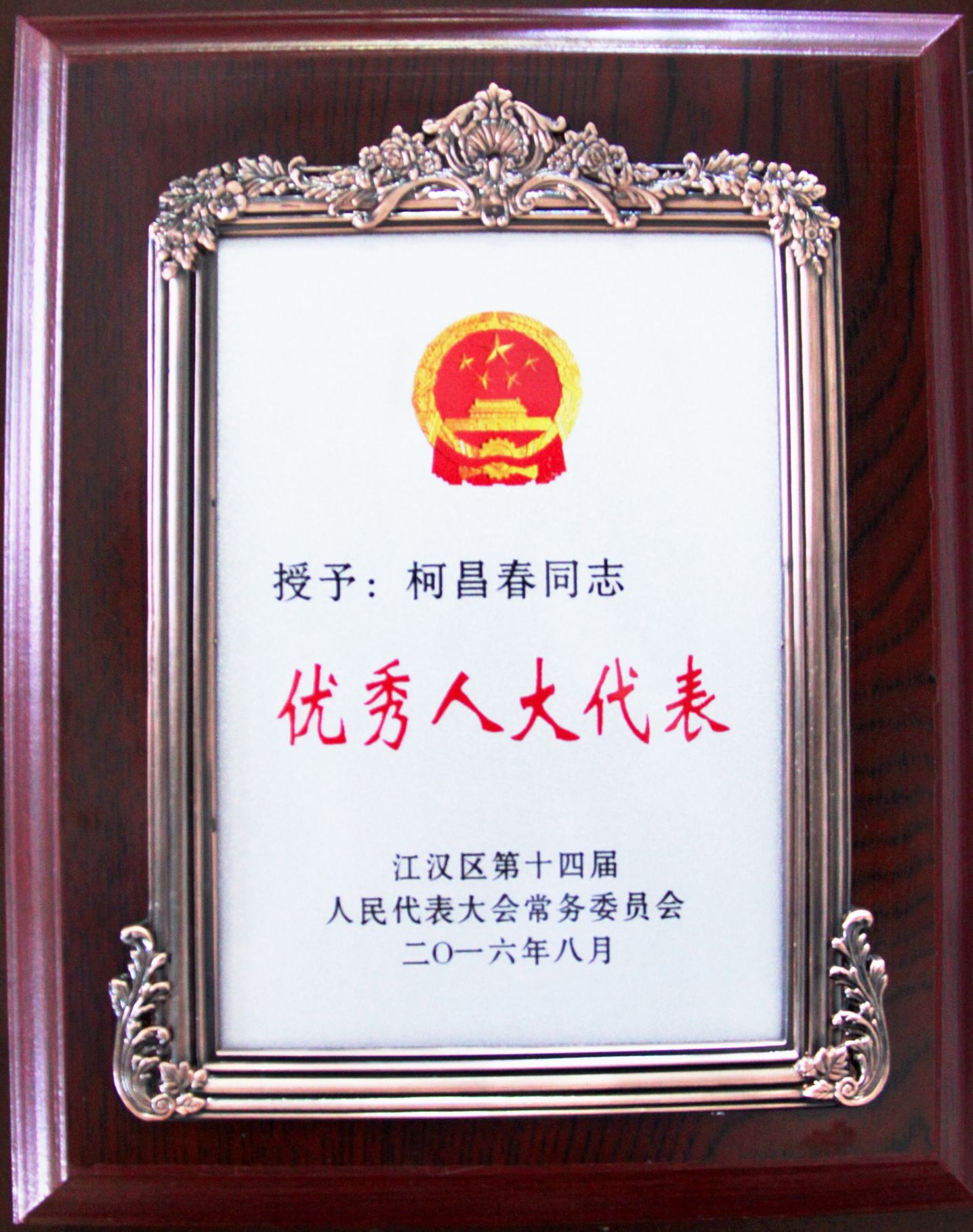 ??? 近日,一則喜報從江漢區(qū)人大傳來,公司董事長柯昌春同志在擔(dān)任江漢區(qū)人大代表期間積極為江漢區(qū)的建設(shè)和發(fā)展建言獻(xiàn)策,被江漢區(qū)人大授予“優(yōu)秀人大代表”榮譽(yù)稱號。