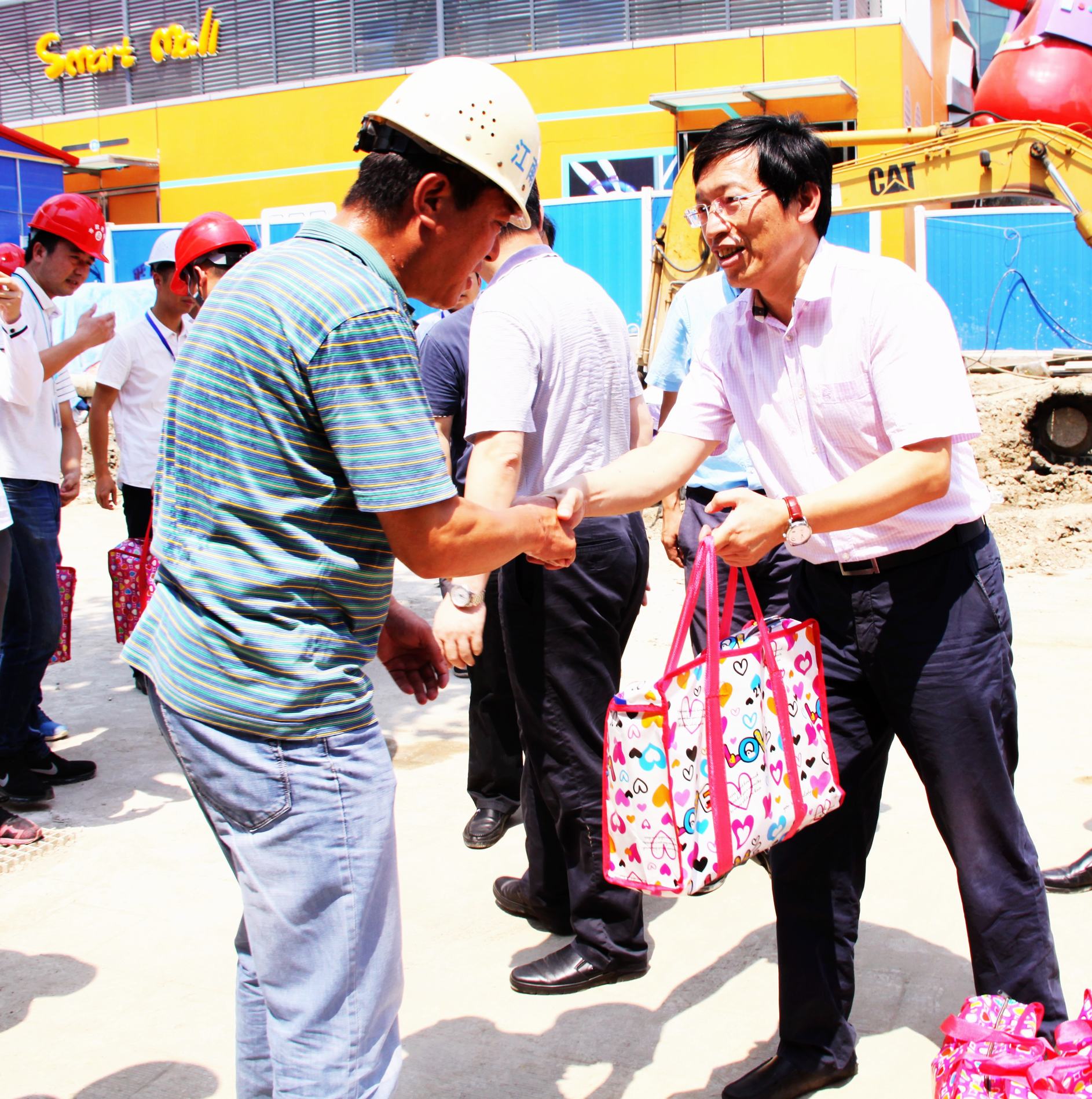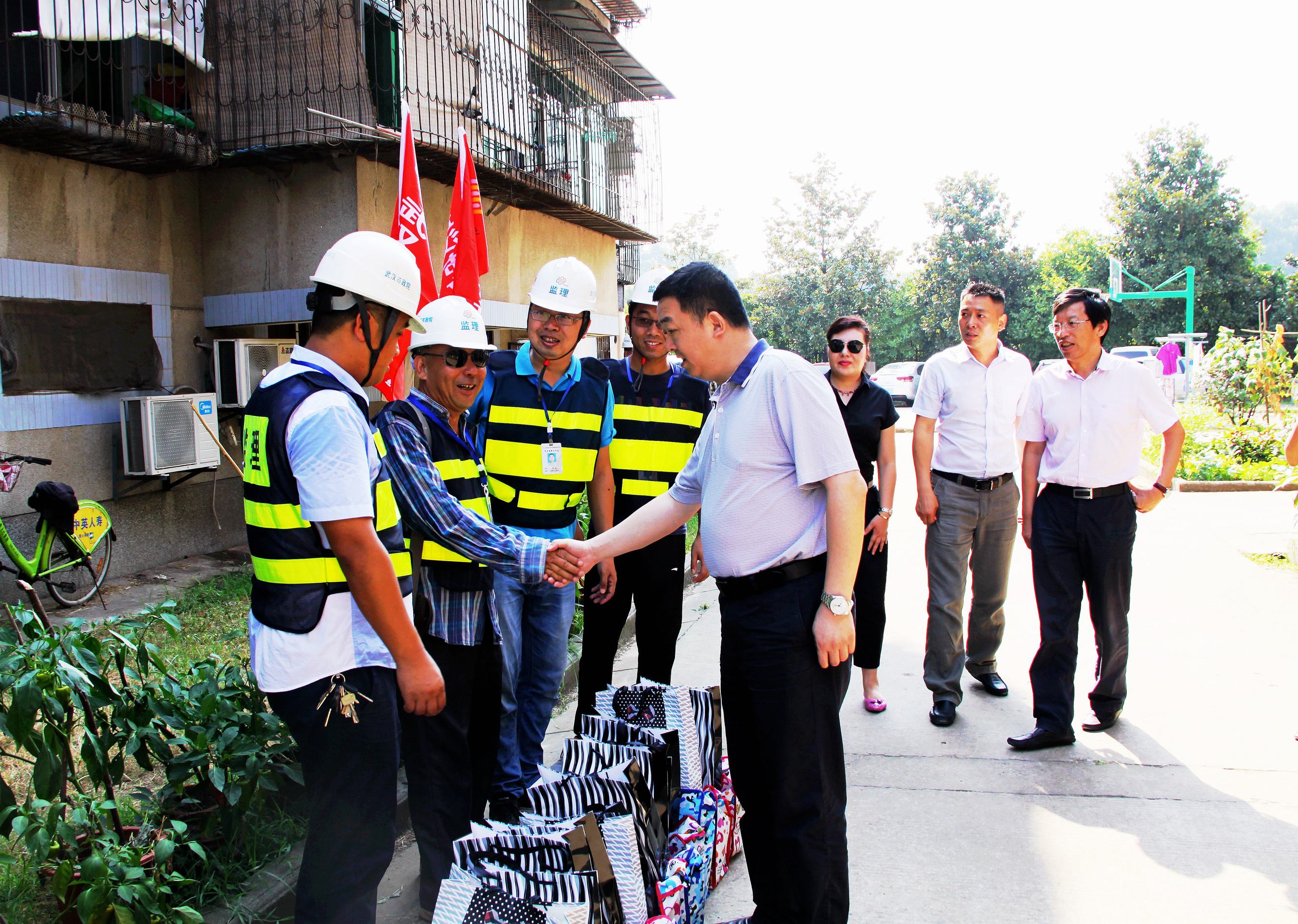 ??? 近日,武漢市遭遇了連續(xù)高溫酷暑天氣,氣溫逼近40度,而公司的勘察、監(jiān)理、檢測、代建等部門還在高溫中堅持作業(yè),以確保建設(shè)項目按期竣工。7月26日,公司黨委書記蔡輝、紀(jì)委書記兼工會主席趙世杰,以及勘察、監(jiān)理、檢測、代建等部門負責(zé)人一行深入工程現(xiàn)場,慰問高溫作業(yè)員工,為他們送上了清涼消暑用品。