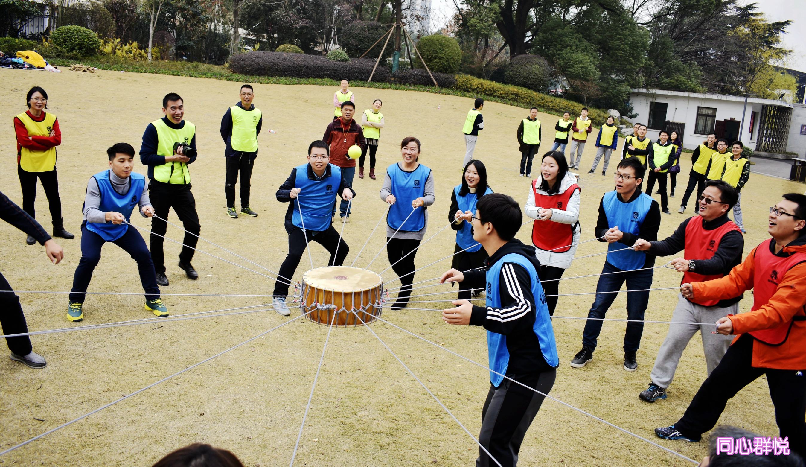 ??? 簡單的破冰游戲后,所有參與活動(dòng)的人員被分成四支隊(duì)伍,本著“友誼第一,比賽第二”的精神進(jìn)行了多種趣味項(xiàng)目的比拼:團(tuán)隊(duì)展示,隊(duì)員們要在五分鐘內(nèi)確定隊(duì)名、隊(duì)呼和隊(duì)形展示;同心群悅,全體隊(duì)員共同牽動(dòng)繩索控制鼓面,五分鐘內(nèi)獲取盡可能多的顛球次數(shù);呼吸的力量,由三男四女共同利用道具拼成七個(gè)進(jìn)氣孔、一個(gè)出氣孔的呼吸機(jī),并利用呼吸機(jī)吹破五個(gè)氣球;公主撕名牌,由四名女生扮演公主并挑選四名男生作為騎士分成四隊(duì)進(jìn)行相互撕名牌游戲;碰碰球,由公司和社保處各出五男五女共十人進(jìn)行接力碰碰球?qū)埂?/p>