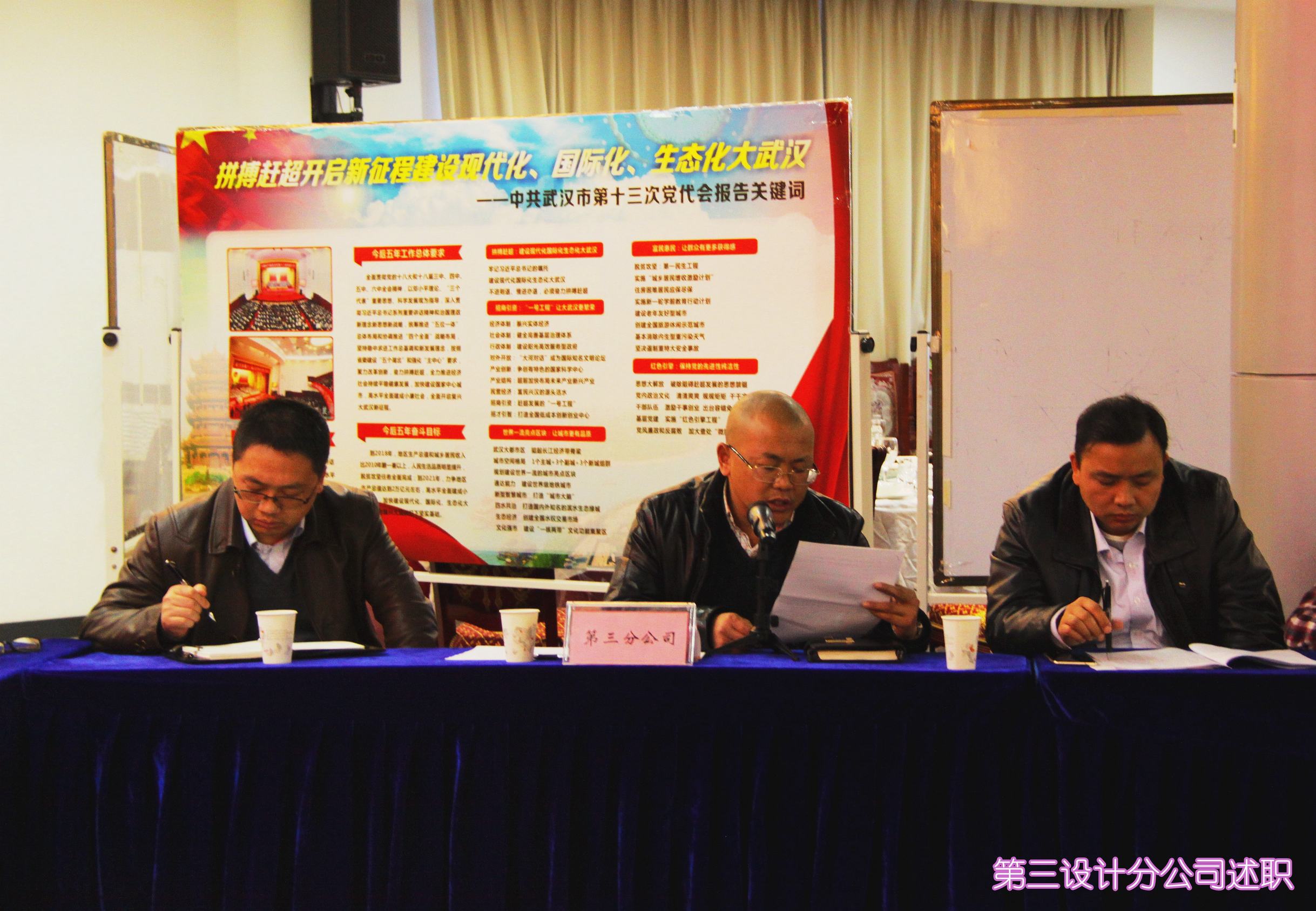 ??? 1月12日下午,公司在二樓會(huì)議室召開(kāi)設(shè)計(jì)分公司2017年度述職座談會(huì),會(huì)議由總經(jīng)理姚華主持,公司領(lǐng)導(dǎo)、總經(jīng)理助理及相關(guān)部門(mén)負(fù)責(zé)人參加了會(huì)議,公司所屬成渝、東莞、南寧以及第三設(shè)計(jì)分公司相關(guān)負(fù)責(zé)人參加了會(huì)議并向大會(huì)述職。